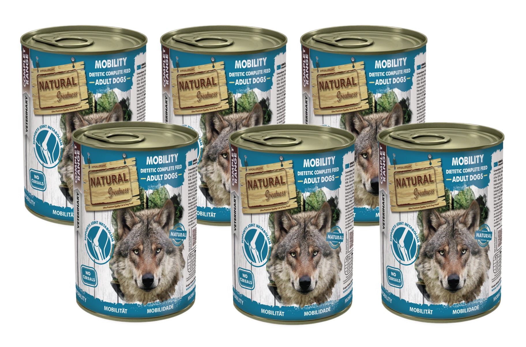 Natural Greatness Mobilität ist ein vollwertiges, hypoallergenes, getreidefreies Nassfutter für junge und erwachsene Hunde aller Rassen, die eine zusätzliche Unterstützung für das reibungslose Funktionieren ihrer Gelenke benötigen. Empfohlen zur Unterstützung der Gelenke nach einem Trauma oder zur Behandlung von Krankheiten wie Arthrose.